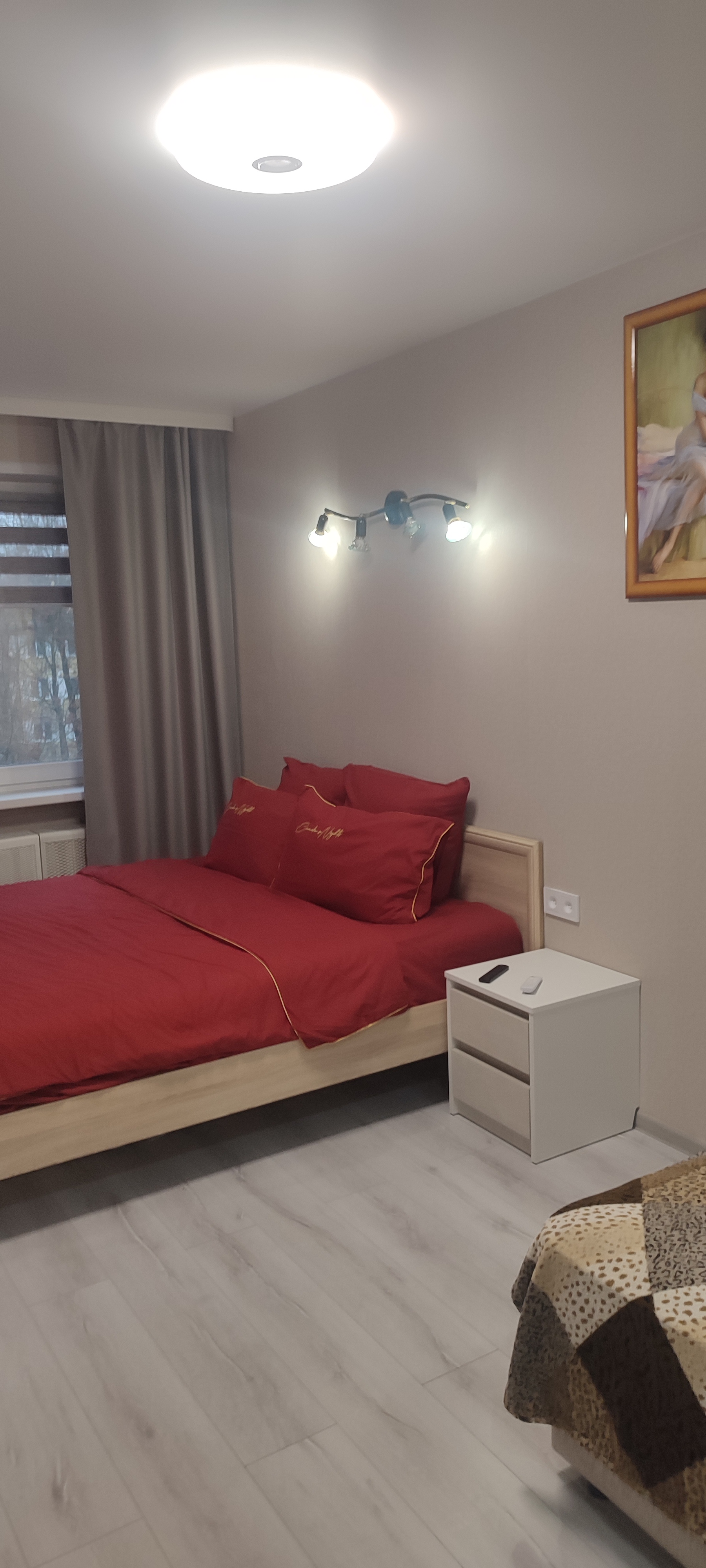 + необычная подсветка (музыкальная Wi-люстра с разными цветами, на пульте)