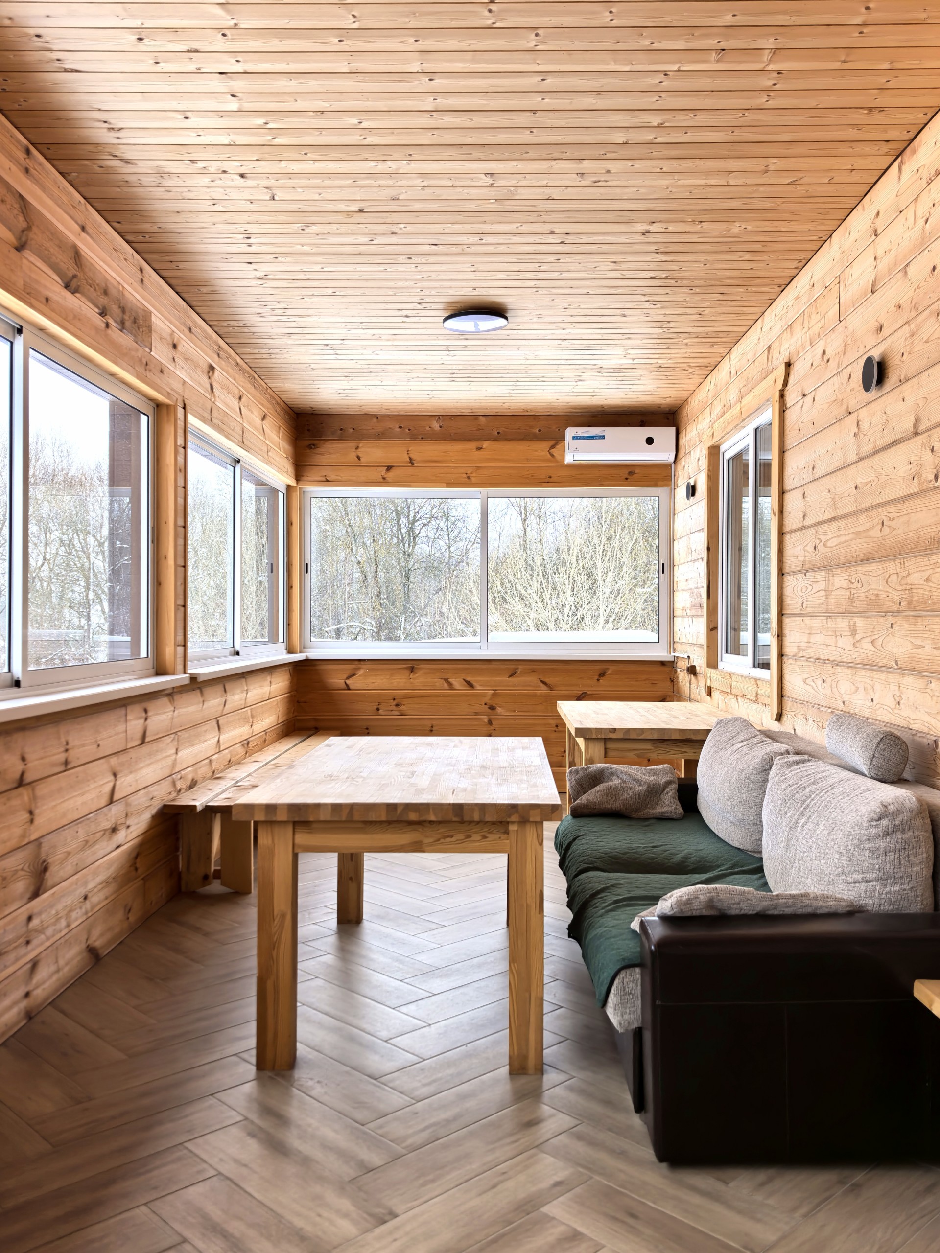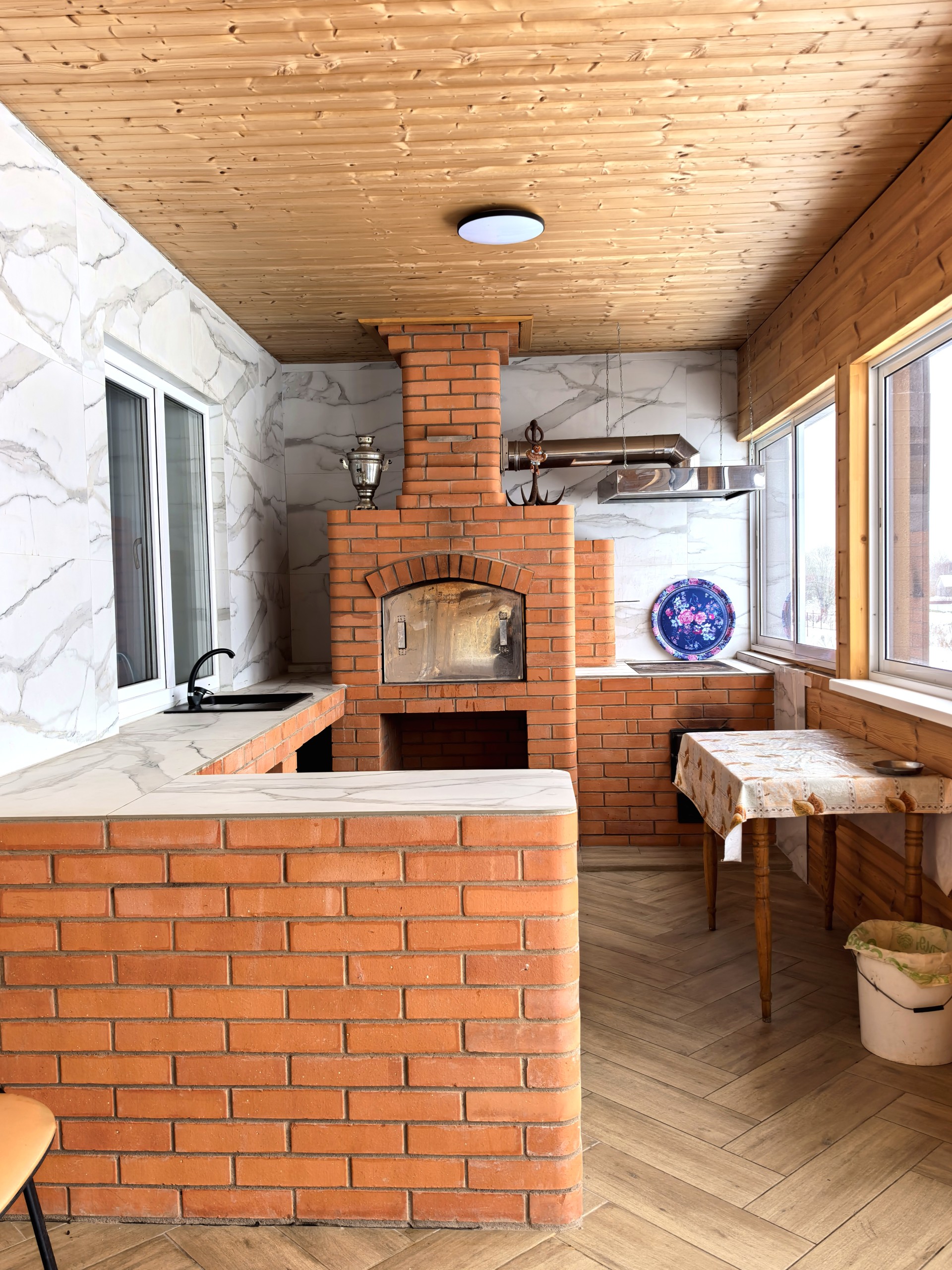 - Застекленная терраса с отдельной кухней и зоной барбекю